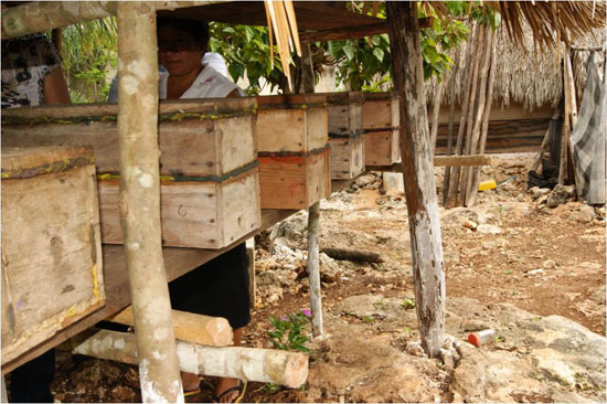 | En la zona maya se desarrolló el sistema de hobones, que son troncos de maderas acorchadas o de madera poco permeable, que se acomodan en estos sitios bajo resguardo del agua, humedad excesiva y animales peligrosos. Este sistema ha conservado sus características en tiempo y espacio, ya que data desde las civilizaciones mayas de hace más de 500 años. Este sistema se transmite de generación en generación y el oficio de cuidador o extractor de miel es respetado entre las sociedades precolombinas por el alto valor comercial y simbólico de la miel. |