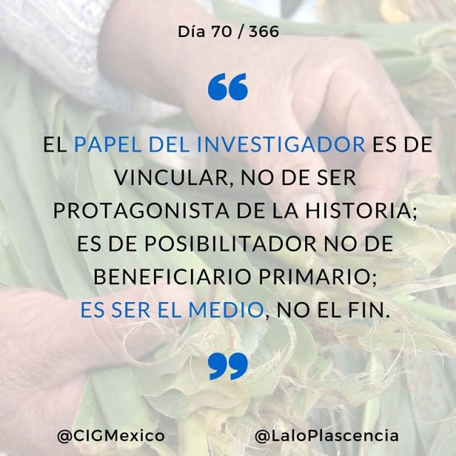 Lo trascendental de la Vinculación es que se genera un proceso de empoderamiento para aquellos que ostentan el conocimiento: los campesinos, productores, gente ajena al ambiente socioeconómico que consume dicha información pueden tener la oportunidad de abrirse nuevos mercados o reportar beneficios a mediano y largo plazo. El papel del investigador es de Vincular, no de ser protagonista de la historia; es de posibilitador no de beneficiario primario; es ser el medio, no el fin.