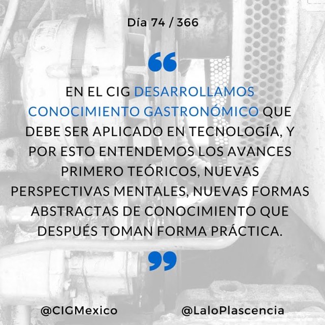 En el CIG desarrollamos conocimiento gastronómico que debe ser aplicado en Tecnología, y por esto entendemos los avances primero teóricos, nuevas perspectivas mentales, nuevas formas abstractas de conocimiento que después toman forma práctica. Creemos que la cocina mexicana puede y debe repensarse desde el ángulo técnico/metodológico, para encontrar nuevas formas no solo de elogio o divulgación, sino de reconocimiento, apropiación, replicación y educación formal.