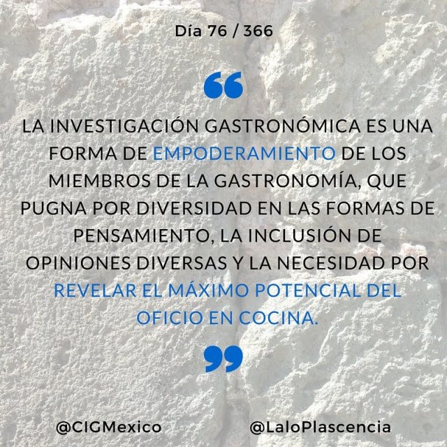 En el día 76 de 366, les agradezco muchísimo hacer posible un sueño: materializar el Universo Investigación Gastronómica. Gracias por acompañarme, y seguimos soñando.