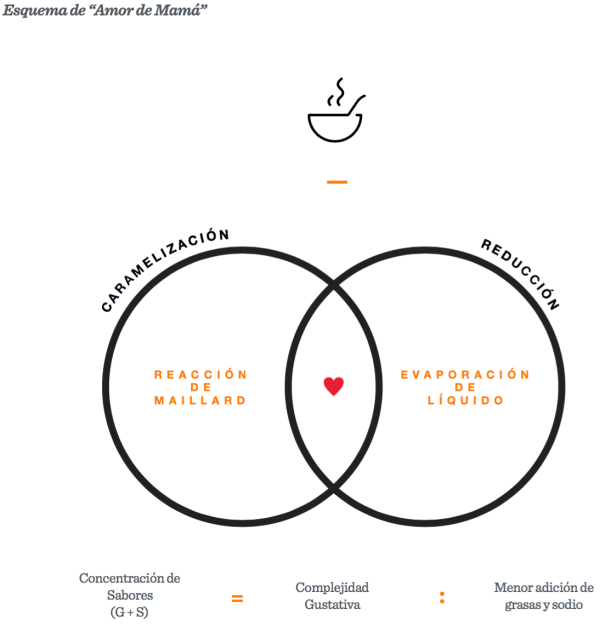 Como ejemplo, la perspectiva de la Ley Universal de la Cocina Mexicana Amor de Mamá que resume la capacidad de la gastronomía mexicana para generar sabor, alegría y nostalgia a través de la interacción de dos factores fundamentales en la cocina: las Caramelizaciones-Reacciones de Maillard de carbohidratos y proteínas, y la Concentración de sabores a través de la aplicación de un calor no mayor a 85ºC para evaporar líquidos y concentrar sólidos.