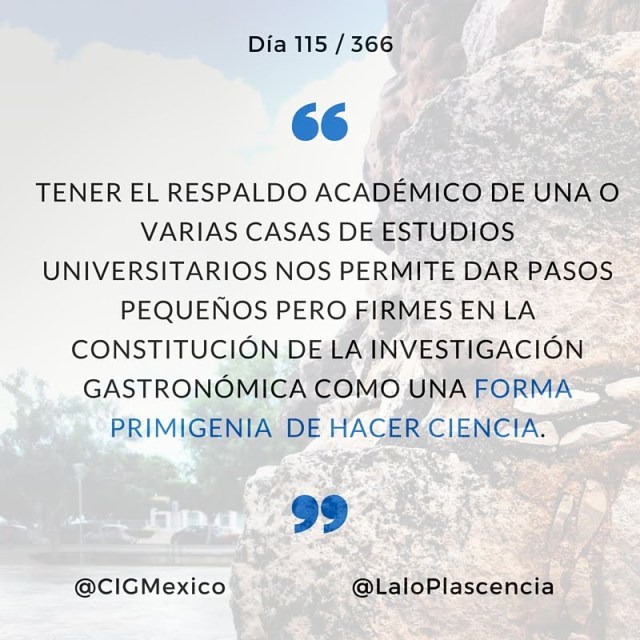 De esa forma, directa e indirectamente avanzamos constantemente en el sustento académico del UIG, de sus metodologías y procesos, de sus formas, figuras y esquemas que han sido ya probados y comprobados por más de 350 personas en todo México. Tener el respaldo académico de una o varias casas de estudios universitarios nos permite dar pasos pequeños pero firmes en la constitución de la Investigación Gastronómica como una forma primigenia –pero particular- de hacer ciencia.