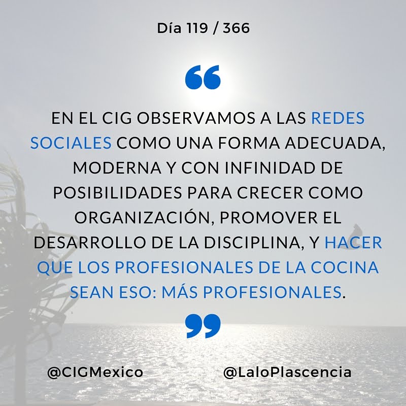 La comunicación es una herramienta poderosa, una forma de llegar a más personas por diferentes vías que complementen la información sin desfragmentarla o pervertirla. Hoy en el CIG observamos a las redes sociales como una forma adecuada, moderna, y con infinidad de posibilidades para crecer como organización, promover el desarrollo de la disciplina, y hacer que los profesionales de la cocina sean eso: más profesionales.