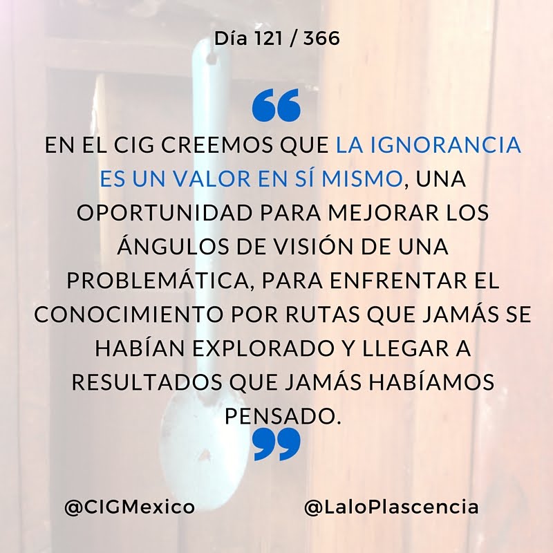 La ignorancia que va disminuyendo con el camino de la investigación adquiere características que hacen a su poseedor un ser más reflexivo, crítico y con posibilidades reales de generar cambios en el marco de los Valores Fundamentales. En el CIG creemos que la ignorancia es un valor en sí mismo, una oportunidad para mejorar los ángulos de visión de una problemática, para enfrentar el conocimiento por rutas que jamás se habían explorado y llegar a resultados que jamás habíamos pensado. Ignorar algo nos puede hacer más innovadores.