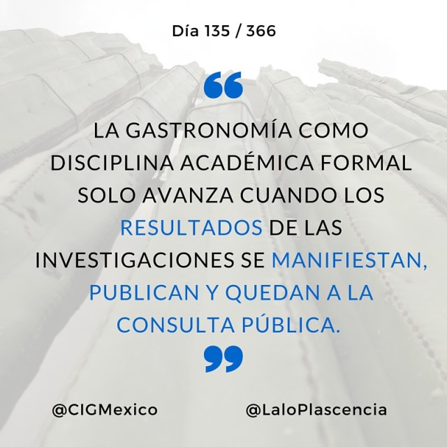 La Gastronomía como disciplina académica formal solo avanza cuando los resultados de las investigaciones se manifiestan, publican y quedan a la consulta pública. Por eso es necesario que los cocineros escriban más y mejor, por eso es necesario que los investigadores sigan publicando en todo momento. Avanzar no es publicar un libro y olvidarse para siempre de esa responsabilidad, es tomarlo como punto de partida para todos los demás documentos que puedan venir en el camino.