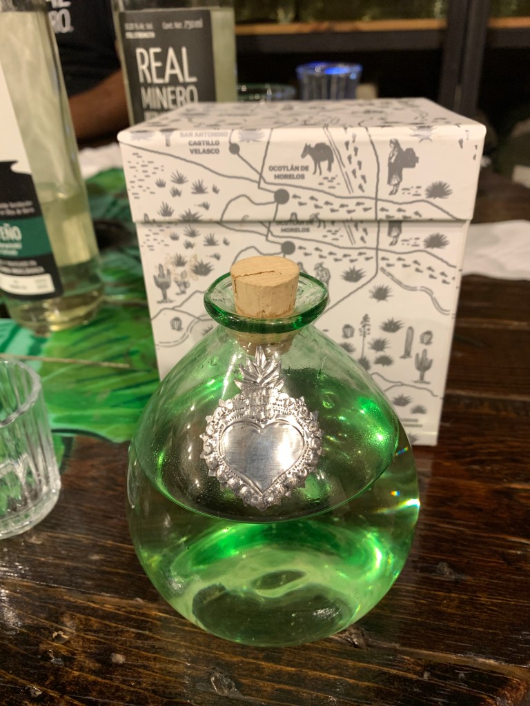 Esta colección de 100 botellas hechas de vidrio soplado en forma de cántaro, junto con esta caja que nos permite descubrir el camino, la belleza de la luz, el líquido y el cristal nos llevan al origen, al cariño existente entre proyectos hermanos que hemos caminado el corazón de la tierra, aquellos en los que cada pieza soplada, cada diseño o cada agave destilado se convierten en un corazón palpitante, un corazón inquebrantable que decanta en la tierra como origen y fin de todo el universo. Salud pues, por la vida, por la continuidad del viaje, por este mundo que nos ha permitido enamorarnos de su naturaleza y disfrutar de sus elixires.”