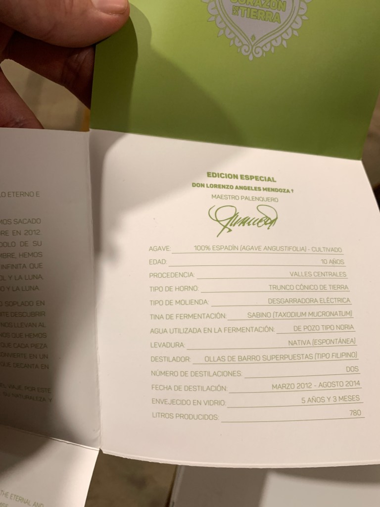 “De la raíz más profunda, donde duerme el sueño de lo eterno e intangible, de ahí proviene esta promesa. Después de 5 años de su partida, por primera vez hemos sacado 100 botellas de un lote producido por nuestro padre en 2012. Este espíritu ha habitado nuestro espacio llenándolo de su presencia. Después de dos años llenos de incertidumbre, hemos llenado nuestros corazones de amor, de esa agua infinita que solo el agave puede dar después de exponerse al sol y la luna, después de recordar el romance entre el murciélago y la luna.