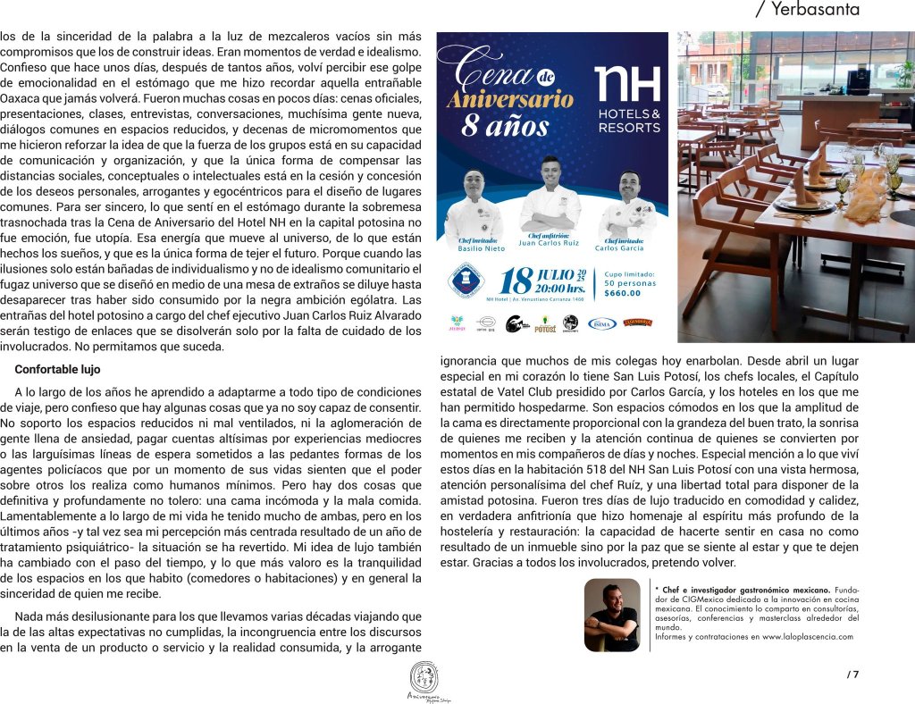 Nada más desilusionante para los que llevamos varias décadas viajando que la de las altas expectativas no cumplidas, la incongruencia entre los discursos en la venta de un producto o servicio y la realidad consumida, y la arrogante ignorancia que muchos de mis colegas hoy enarbolan. Desde abril un lugar especial en mi corazón lo tiene San Luis Potosí, los chefs locales, el Capítulo estatal de Vatel Club presidido por Carlos García, y los hoteles en los que me han permitido hospedarme.