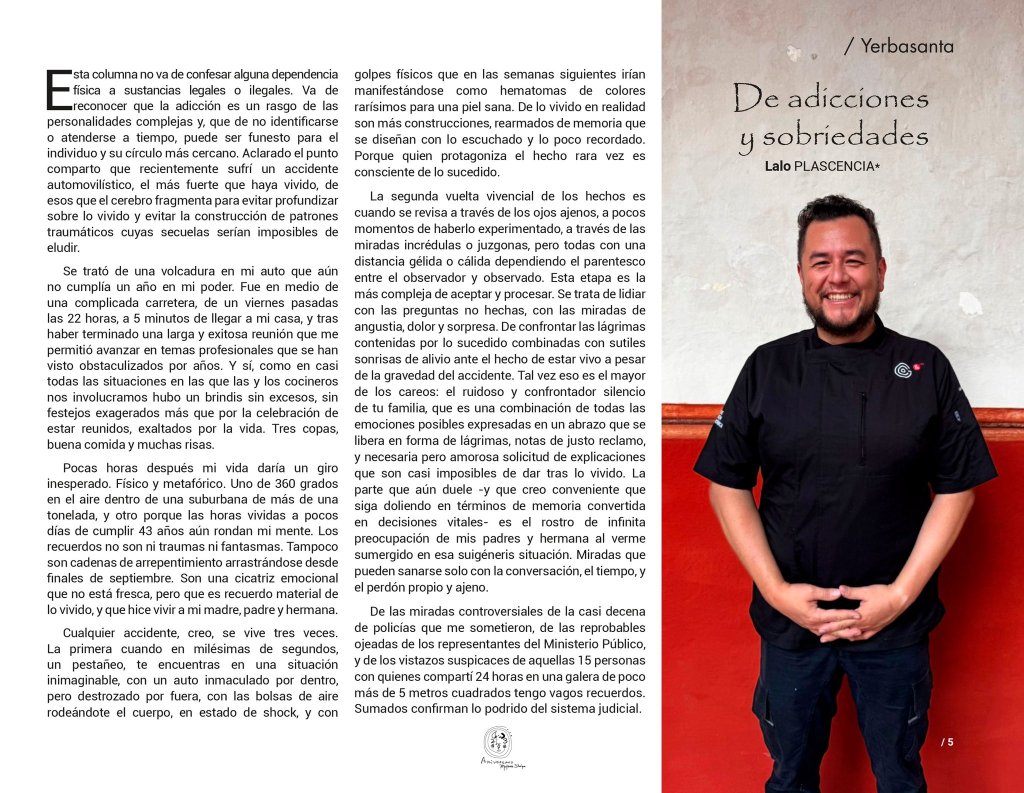 Se trató de una volcadura en mi auto que aún no cumplía un año en mi poder. Fue en medio de una complicada carretera, de un viernes pasadas las 22 horas, a 5 minutos de llegar a mi casa, y tras haber terminado una larga y exitosa reunión que me permitió avanzar en temas profesionales que se han visto obstaculizados por años. Y sí, como en casi todas las situaciones en las que las y los cocineros nos involucramos hubo un brindis sin excesos, sin festejos exagerados más que por la celebración de estar reunidos, exaltados por la vida. Tres copas, buena comida y muchas risas.