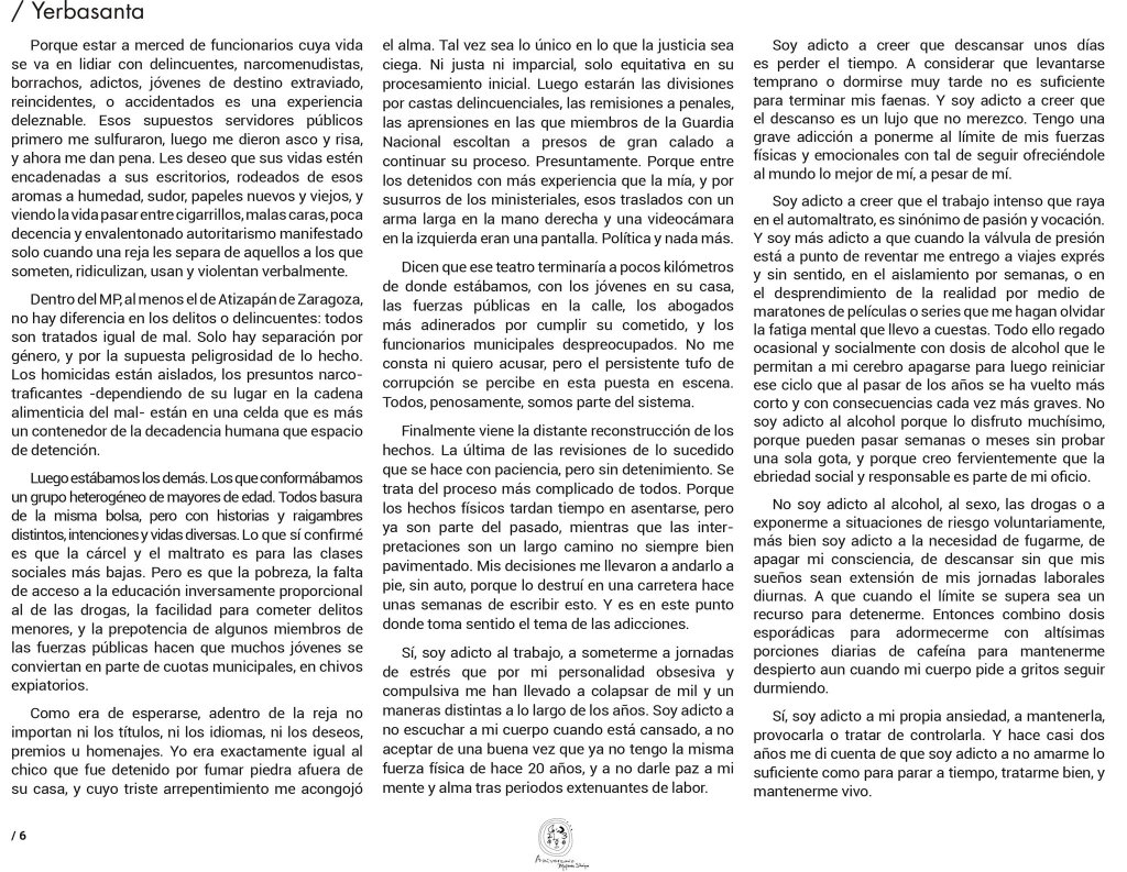 Estoy vivo, consciente, escribiendo, conviviendo con ellos y, en gran medida, feliz. Y después de que pude estar muerto o matar a alguien en el camino, eso es ya mucho decir. En el camino de las adicciones no estamos solos, nunca lo estamos, solo hay que voltear a ver a quienes te sostienen y agradecerles desde este lado de la vida por su presencia y paciencia. Por llegar hasta aquí sin juzgar -y no me refiero solo a lectura- mi profundo agradecimiento. Sigamos que aún quedan muchas letras, copas, risas, proyectos y sueños por compartir. Estamos vivos.