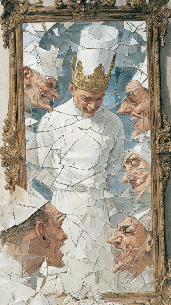 En ese sentido, los restaurantes que abandonan sus principios son espacios carentes de sentido, lugares de culto en los que no se adora a una divinidad sino al sacerdote encargado de la transmisión de lo eterno. Falsedad, hipocresía, y mucha champaña para facilitar la deglución. El gremio está obstinado en el éxito como objeto permanente, y no como entidad movible, adaptable, intangible y casi inasequible. Es Narciso ciego observando su reflejo en una fuente vacía. Todo es un engaño. Todos viven en una dulce mentira.