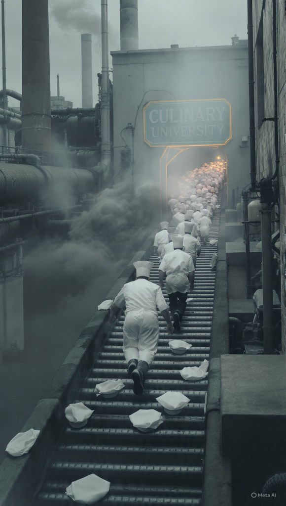 Desde las cátedras convertidas en púlpitos, las nuevas ofertas educativas han refinado las formas para engañar a la juventud ilusionada por pertenecer a un ambiente que, después del fútbol, se ha convertido en motor de idolatría. Todos construyen la falacia: los cocineros famosos sobre los que montan las campañas publicitarias, los oscuros claustros de profesores cada día más irreflexivos, los comensales, la televisión, la falta de autoestima colectiva, el egocentrismo culinario español, la falta de autocrítica académica, el periodismo al servicio del poder, los estudiantes sometidos al imperio tiktokero, pero sobre todo la necesidad de no perder la hegemonía gastronómica que por casi medio siglo han enarbolado.